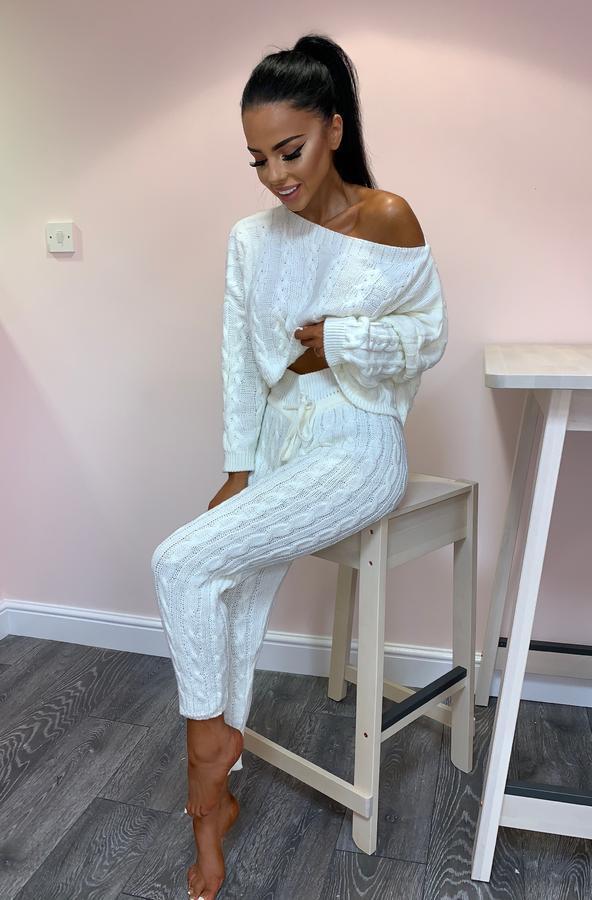 Cream Cable Knit Womens Loungewear Set Forever Yane
